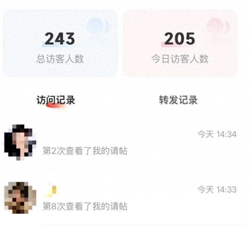 网友陈先生表示,对于没计划出席的用户来说,这样的访客记录会让他们陷入尴尬境地。“我觉得这是对我们隐私的一种侵犯。有时候很长时间不联系的人突然发个请柬,我明明可以装不知道,但他在后台可以看见我浏览过,会让我们的处境很尴尬。”